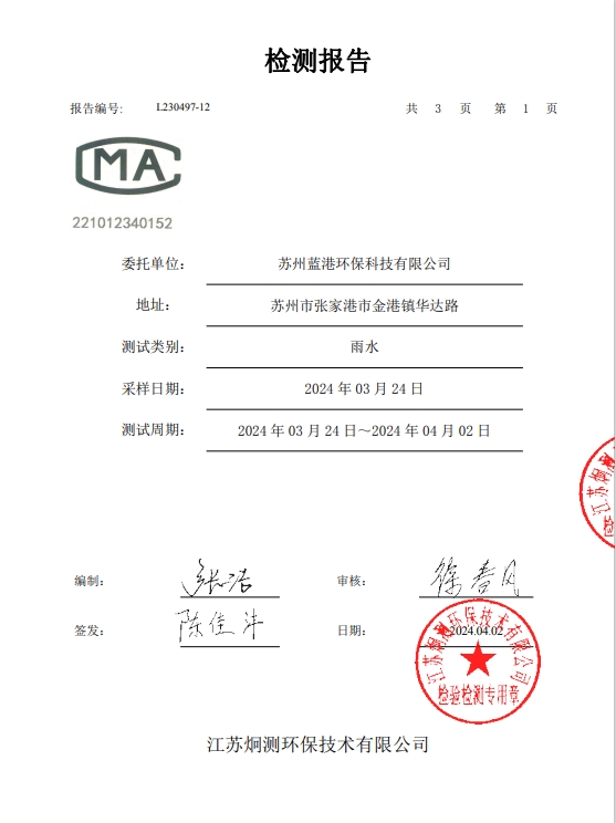 蘇州藍港環??萍加邢薰緳z測報告已公示,詳情請查...